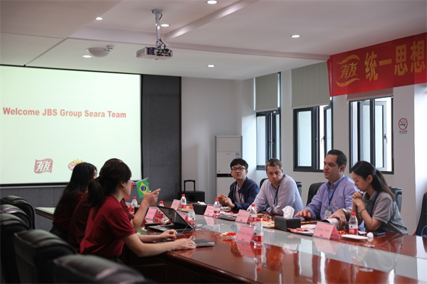 5月24日,巴西JBS集团Seara公司国际市场执行总监Mr.Marcelo、亚洲区销售总监Mr.Danilo、中国区销售经理Mr.Zhou、Mrs.Qiana一行前往华体买球_华体买球璧山生产基地参观交流,沟通双方的发展现状与展望,华体买球_华体买球常务副总鹿游进行了接待。